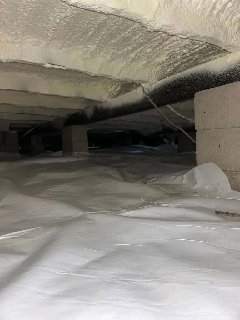 - Installing a thick, durable vapor barrier across the entire crawl space floor and up the walls.